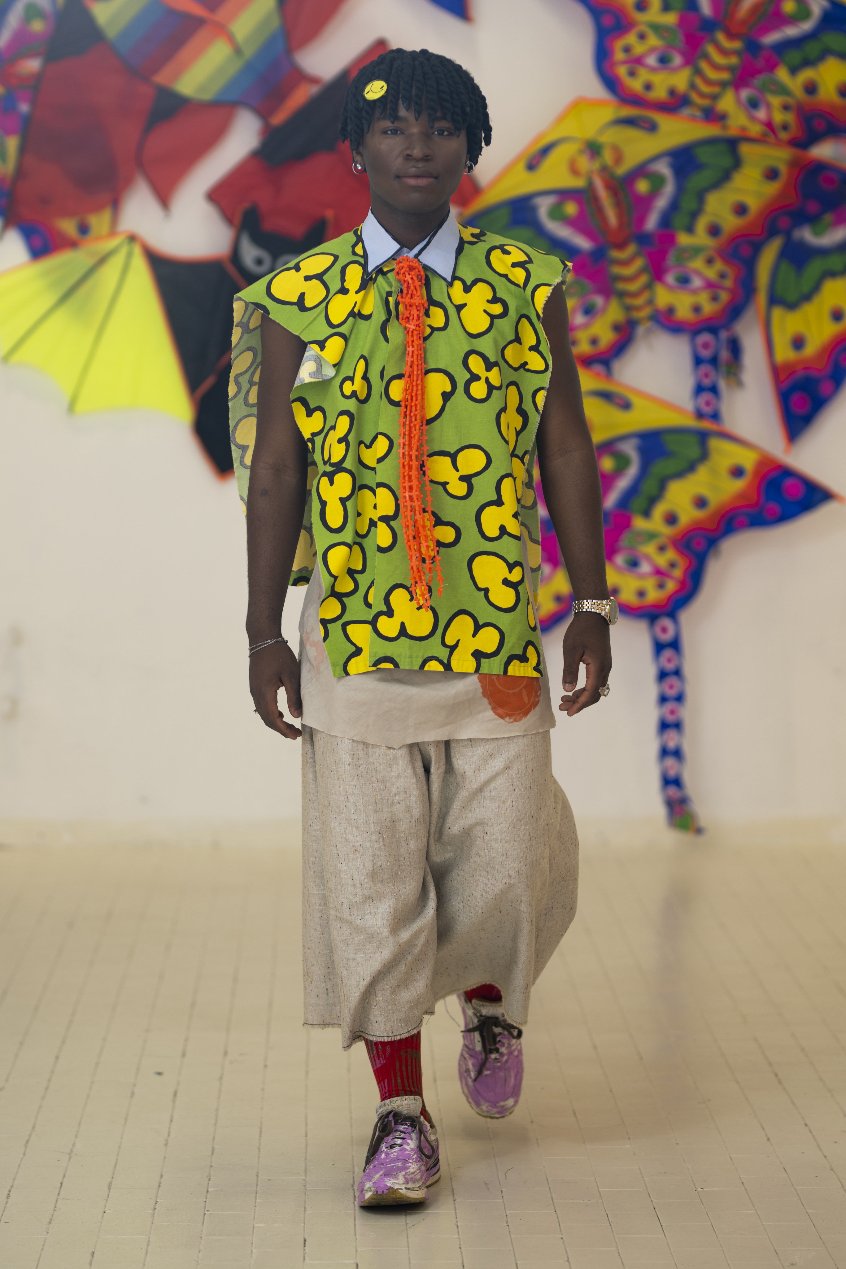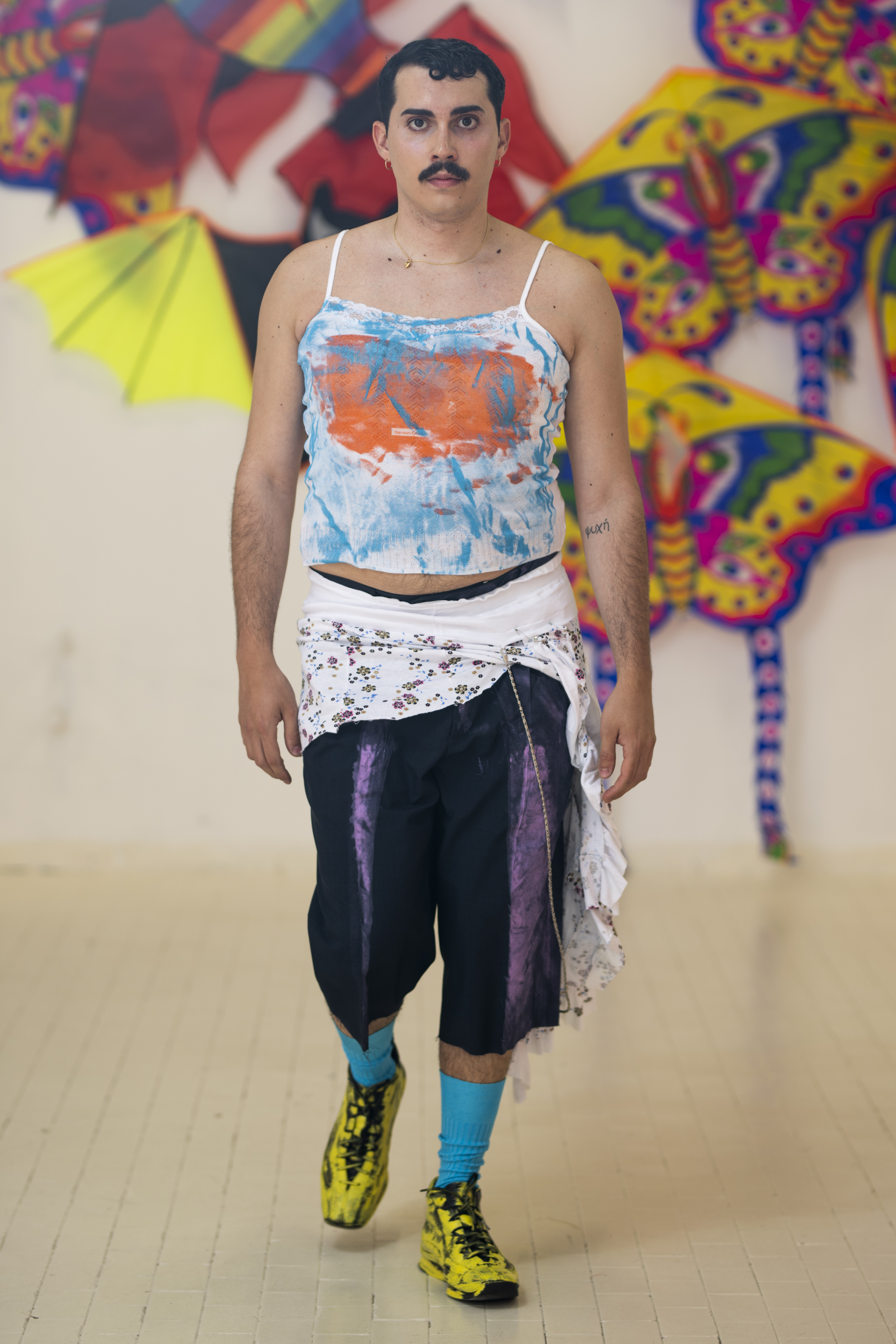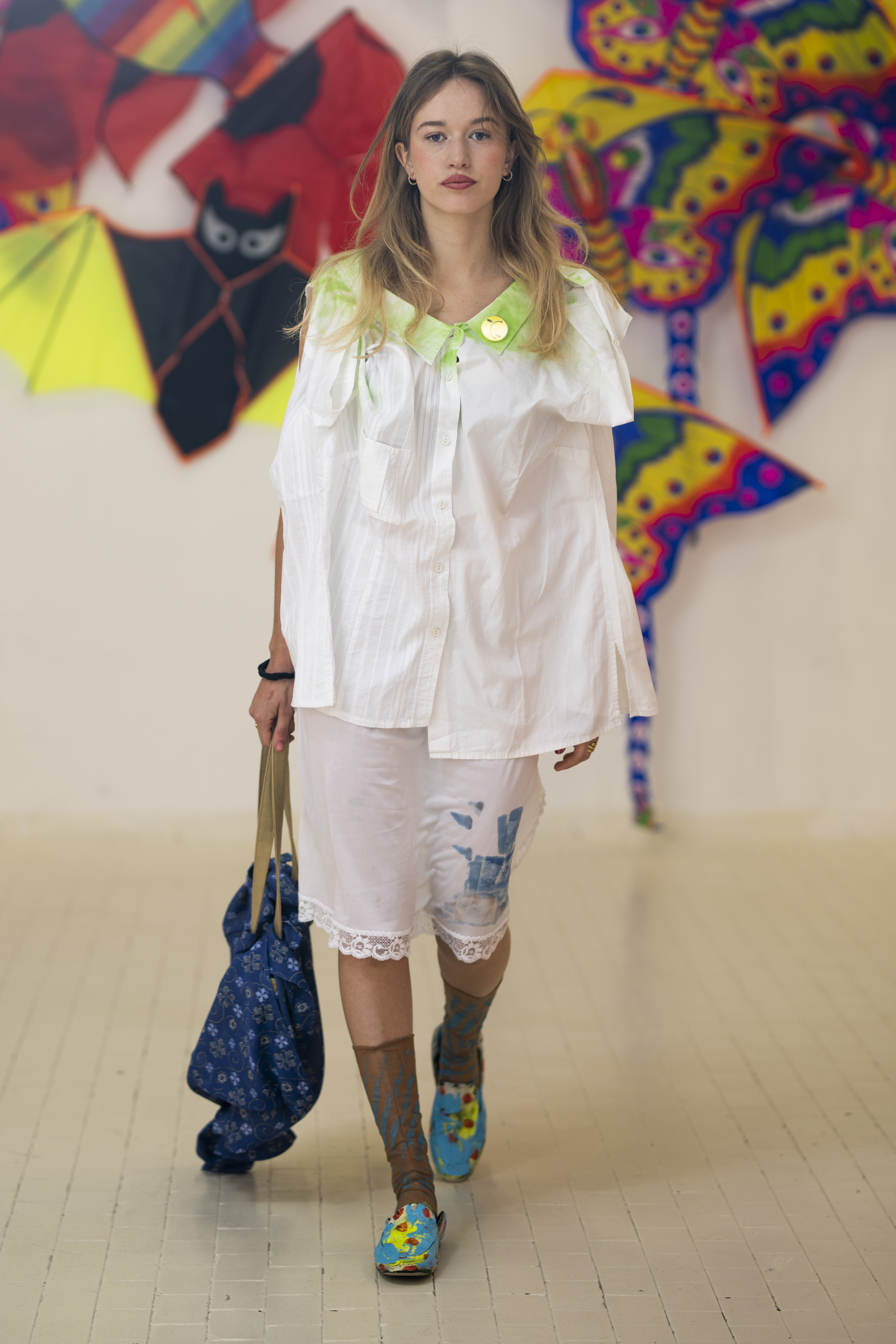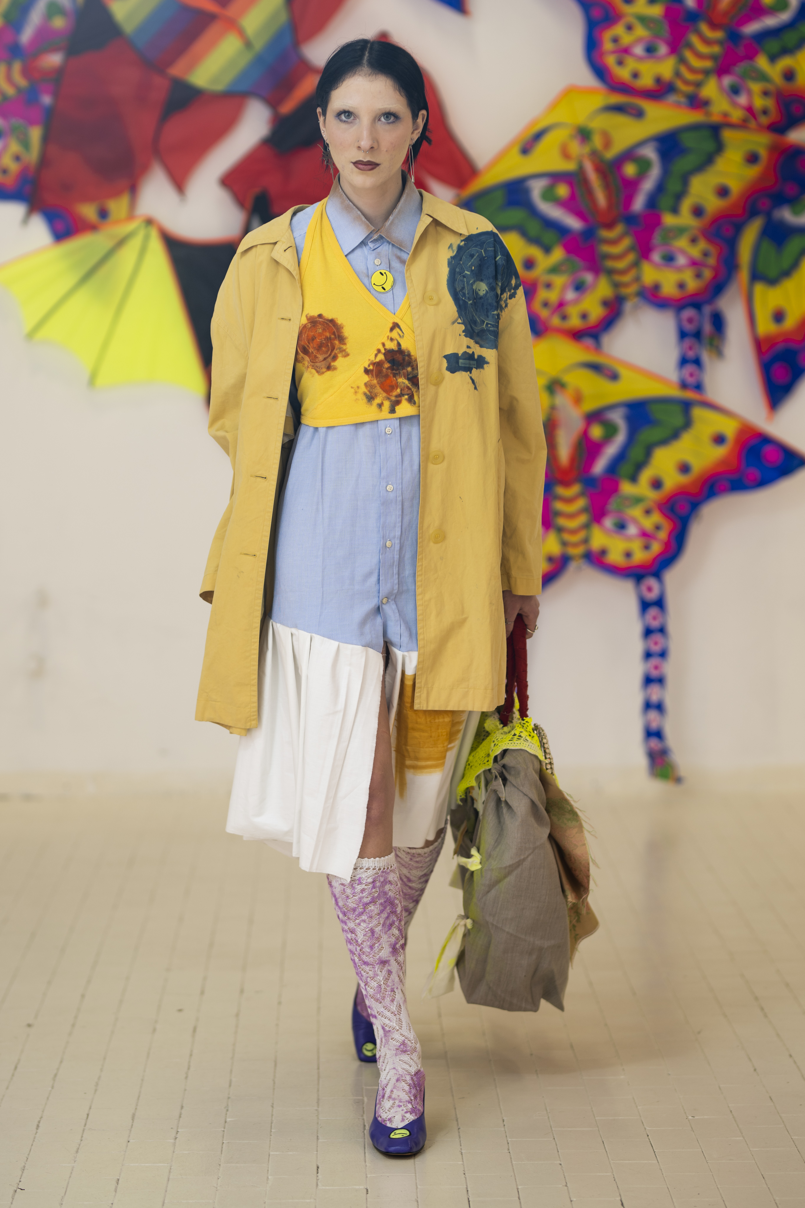 Questa storia è ben rappresentata dal caos felice di Simone Botte e Filippo Biraghi, un mondo sottosopra fatto da centrini sulle scarpe, rosari al posto di cravatte, orli non finiti, spille e balze colorate. Partendo dall’Io bambino, dall’infanzia e da quella giocosità piano piano viene svelato un sottotesto alquanto inquietante di stratificazioni e citazioni punk.