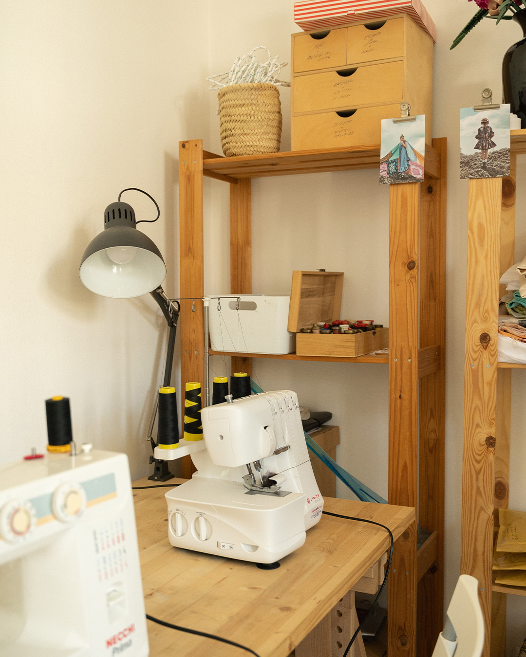 FANTASIE VINTAGE. Per l’abbigliamento ho iniziato a lavorare con materiali di recupero di ottima qualità, con bellissime stampe che non si trovano più in giro. Il 100% cotone di queste stoffe non esiste più in produzione. Per me è inutile l’idea di produrre altra stoffa, ce n’è già tantissima nei magazzini! Non abbiamo la necessità di produrre altri scarti.