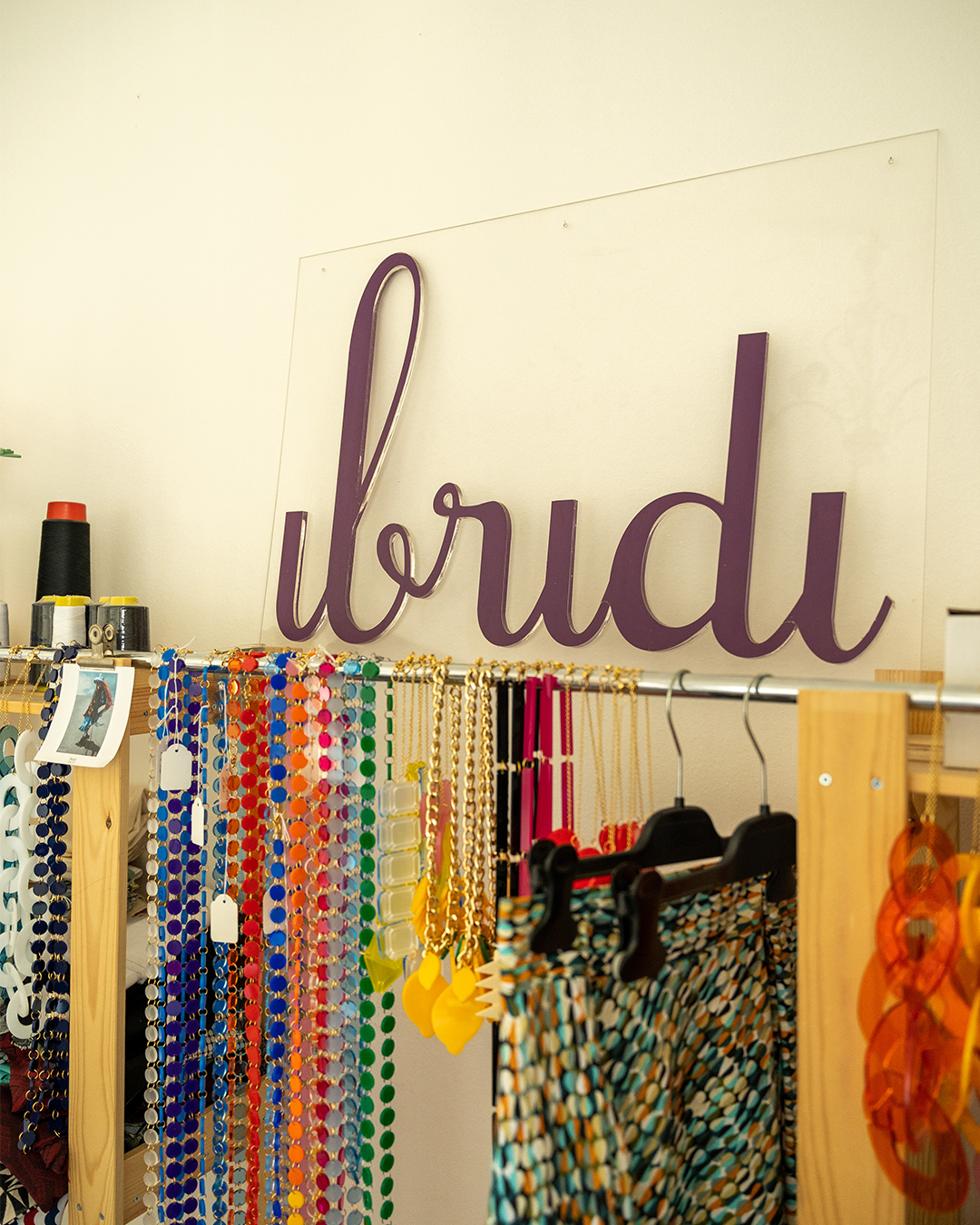 COS’è IBRIDI. Ibridi nasce nel 2006 e da allora si è evoluto. Quando è nato era un miscuglio di cose, da questo il nome. Mi piaceva l’idea della mescolanza e inclusione fatta di design. Ho iniziato creando gioielli in plexiglass. L’idea di fare sartoria è venuta un po’ per caso quando un giorno trovai la macchina da cucire a casa dei miei genitori e decisi di frequentare dei corsi di cucito.