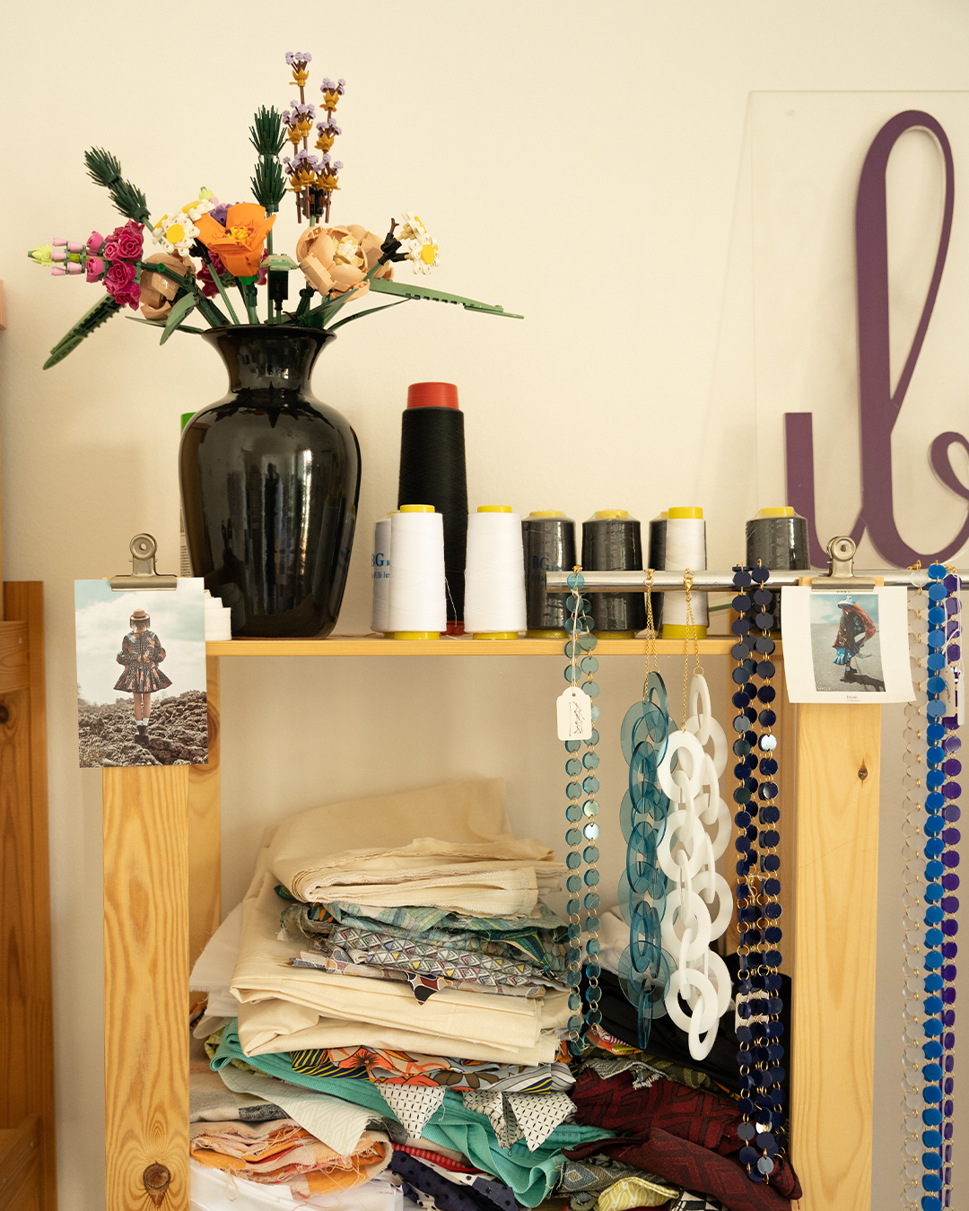 FARE MENO E FARE MEGLIO. Se prima producevo trenta modelli di orecchini, oggi preferisco averne quindici continuativi. Ora lavoro molto per stagione e non più per collezione. Anche per quanto riguarda l’abbigliamento, preferisco fare una selezione di tessuti che mi ispirano, i quali messi insieme hanno un senso come collezione ma non seguo dei modelli standard.