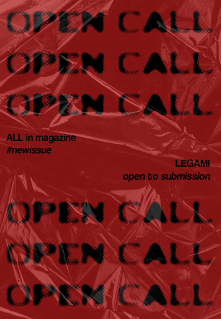 Sono aperte le submission per il prossimo numero di ALL in! Per partecipare manda un email a allin.redazione@gmail.com con la tua idea, il tuo progetto o il tuo articolo e saremmo lieti di pubblicarlo. Ti aspettiamo.