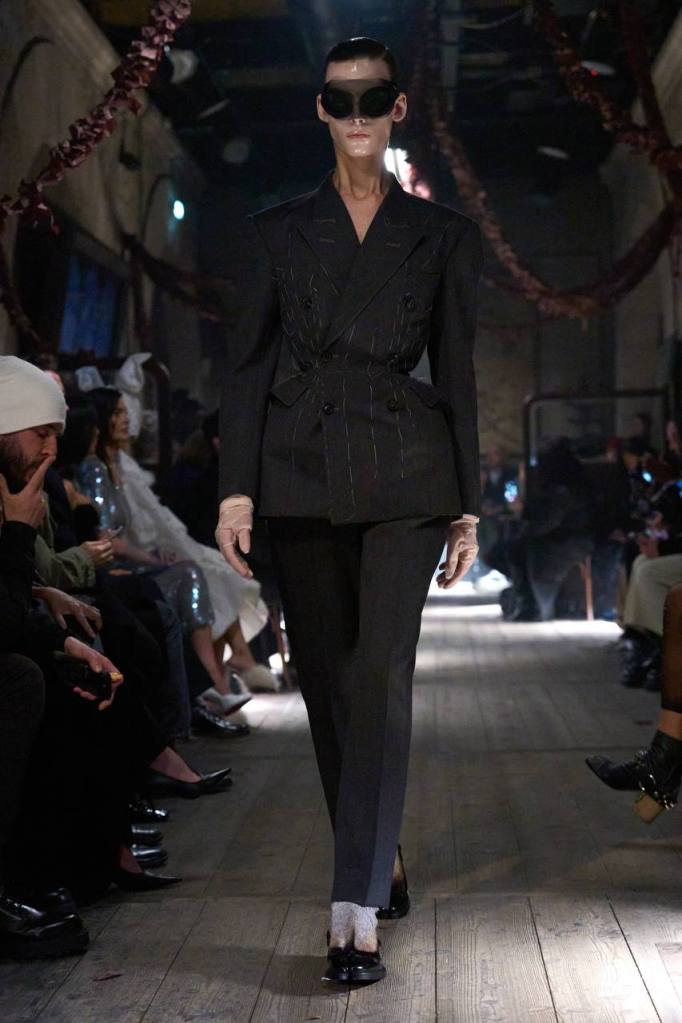 Dunque troviamo che il mondo della moda e quello del cinema siano sempre più legati. Non pensiamo che sia totalmente un caso il fatto di voler evadere dalla monotonia andando al cinema o aspettando con ansia una sfilata che non abbia nulla a che vedere con le ultime viste e riviste alla Paris Fashion Week. Questo bisogno di abbracciare sempre nuove visioni e nuovi immaginari è alla base della cinematografia tanto quanto della moda. Dovremmo ricordarci che non esistono solo le vendite delle collezioni o gli incassi al botteghino. Vi sono anche persone che credono in qualcosa, in qualcuno, in un brand o in una visione. Scegliere di andare al cinema oggi è quasi un atto di ribellione. Vestire Margiela lo è sempre stato, tranne se state pensando alle Tabi (oggetto ormai diventato mainstream). Tutto sembra uguale, tutti i direttori creativi sembrano andare nella stessa direzione, bensì alcuni, i più arguti, vanno nella direzione giusta: quella opposta, la stessa che percorre Bella di Poor Things per esplorare il mondo scoprendo “sia le sue dolcezze che la sua violenza”.