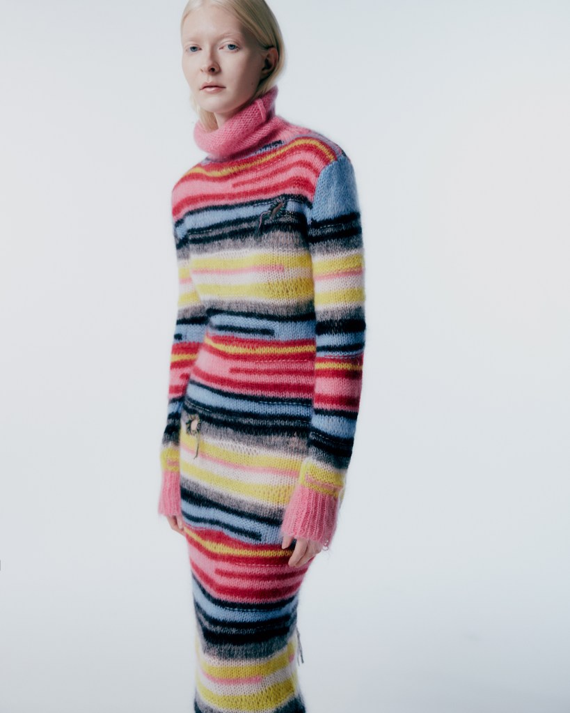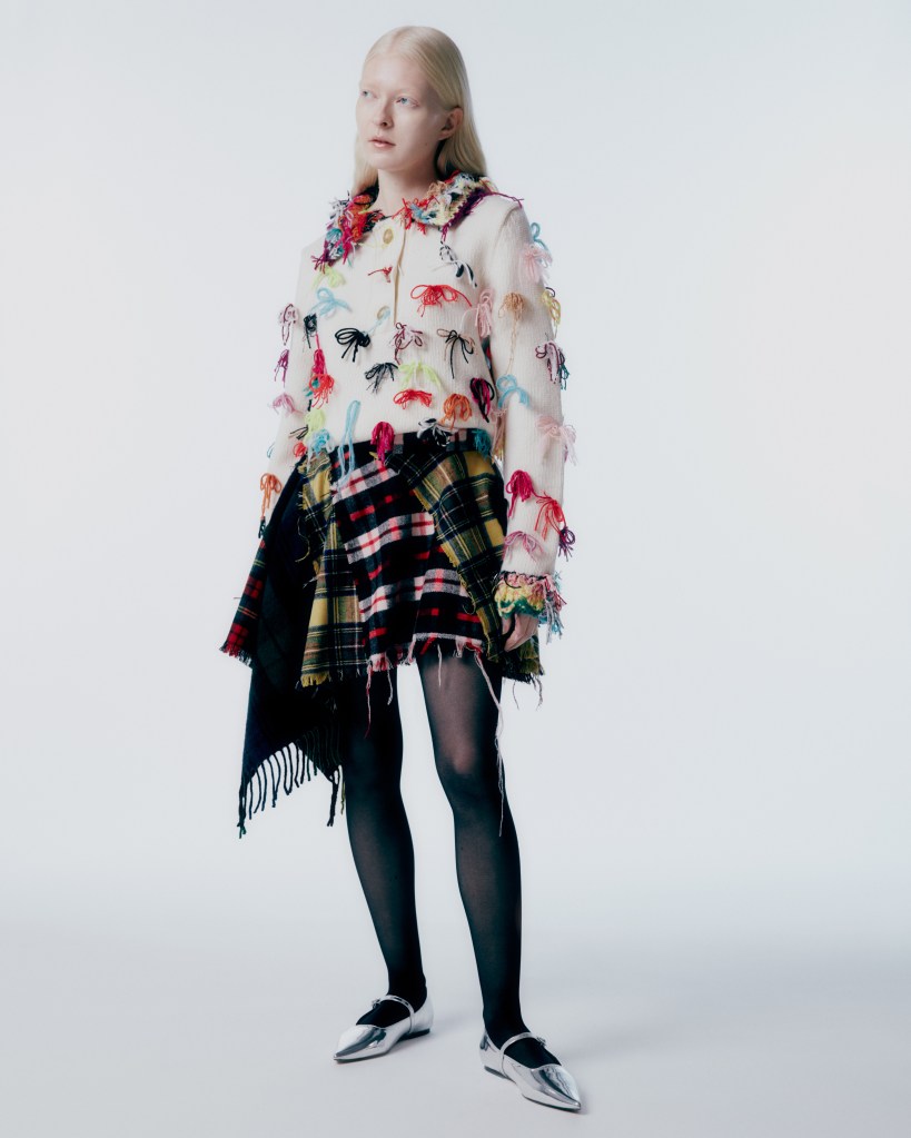 Tessuti scozzesi e fantasie tartan diventano protagonisti in questa collezione dal gusto british, arricchiti da ruches e fiocchi che conferiscono un tocco più romantico distintivo del brand. Coperte originali scozzesi sono state trasformate in abiti, cappotti e gonne, tutti pezzi unici che si affiancano alla maglieria – cuore del marchio fin dagli esordi, con i suoi capi realizzati a mano da artigiane italiane – caratterizzata da righe multicolour e fiori crochet.