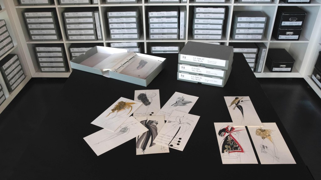 Tutto ciò è accaduto pochi anni fa, durante il periodo pandemico, come sei riuscita a farti notare? Ho arricchito il mio percorso con esperienze di stage presso il Museo della Città di New York e l’Archivio Storico Gianfranco Ferré. Ma appunto mi sono laureata durante il tanto temuto lockdown ed era difficile pensare a delle future prospettive in quel momento. Tuttavia, ho iniziato a lavorare come consulente per il progetto dell’archivio digitale di Bulgari. Così ho realizzato quanto i programmi di database e le piattaforme online fossero fondamentali per permettere una corretta organizzazione e indicizzazione del patrimonio culturale. Allo stesso tempo, ho iniziato a lavorare per il progetto Romaison, curato da Clara Tosi Pamphili e promosso dal Comune di Roma. L’obiettivo era di raccogliere per la prima volta in un’unica piattaforma i costumi conservati nelle sartorie che avevano fatto la storia del cinema a Roma. Abbiamo censito abiti apparsi in film come Salò o le 120 giornate di Sodoma, Edipo Re, Uccellacci e uccellini, Barbarella, il Satyricon. Di lì a breve ho iniziato un percorso come assegnista di ricerca al Politecnico di Milano, dove mi sono occupata dello studio e della valorizzazione dell’archivio Gianfranco Ferrè. In ultima battuta, sono approdata all’Archivio Storico della Maison Valentino, dove ho potuto confrontarmi con il lavoro di un brand tuttora attivo. Oggi, dopo un semestre come docente del corso di “Fashion and Costume Archives” presso la NABA di Roma, inizio un nuovo ruolo come responsabile dell’archivio storico della Maison Roger Vivier.