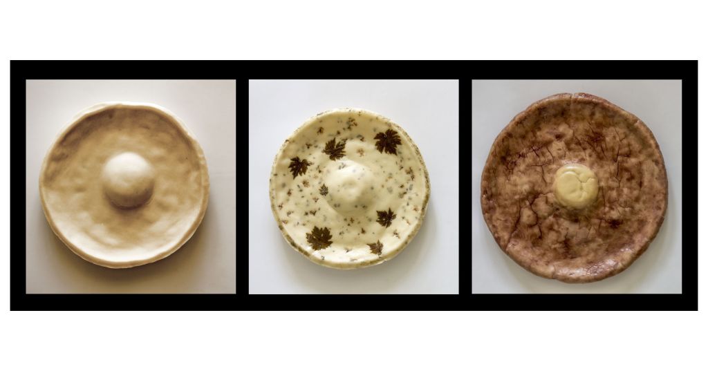 Trasmutazioni riprende nelle forme le “Patere” etrusche, piatti che venivano usati nei sacrifici per le offerte agli dèi o nelle celebrazioni pubbliche. La patera nelle sue due forme essenziali, concavo e convesso, rappresenta l’unione tra il maschile e il femminile, in una coesione universale. Il lavoro eseguito per Materia Prima Foundation richiama diversi aspetti legati al territorio toscano, al vino e al suo aspetto profano e sacro.