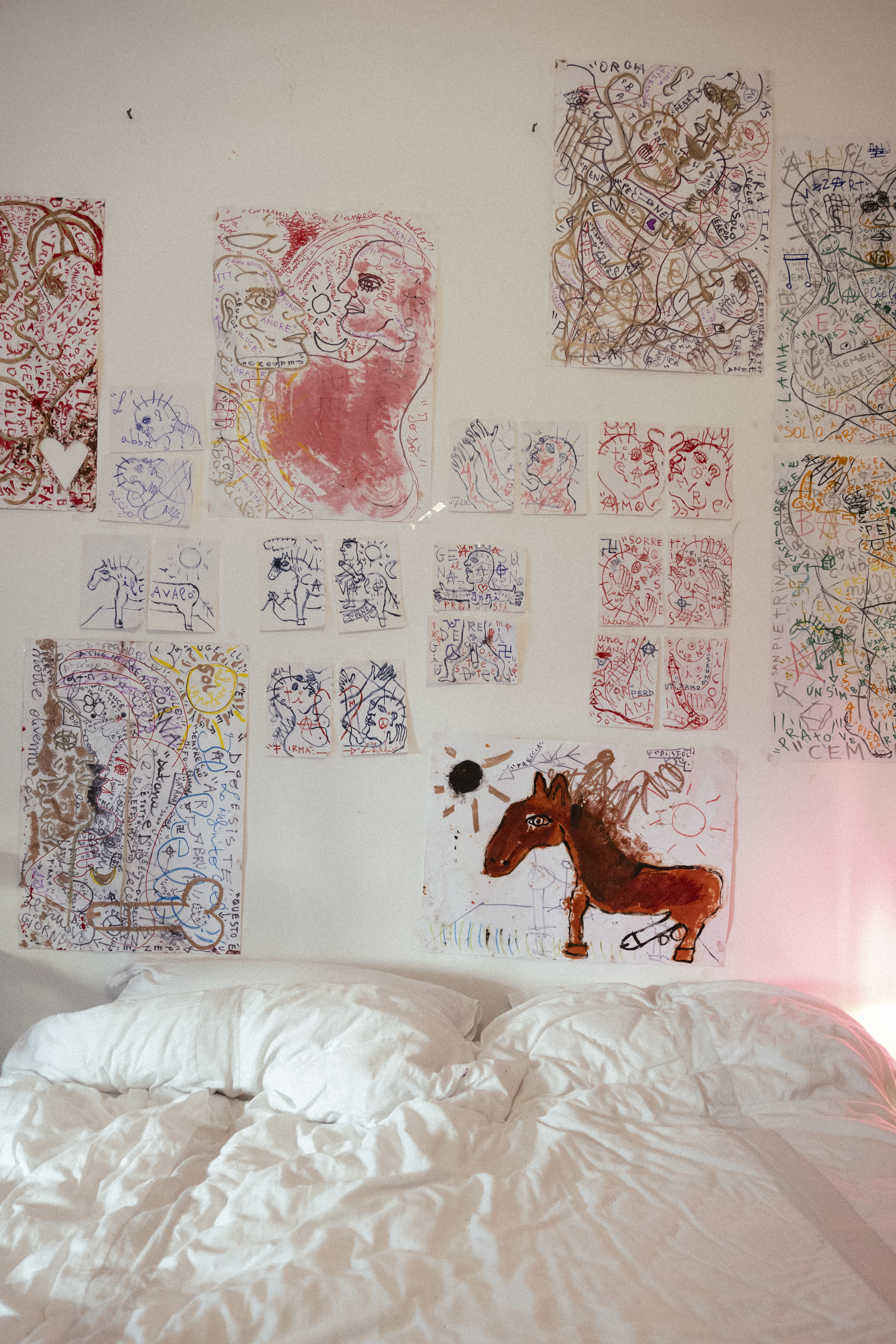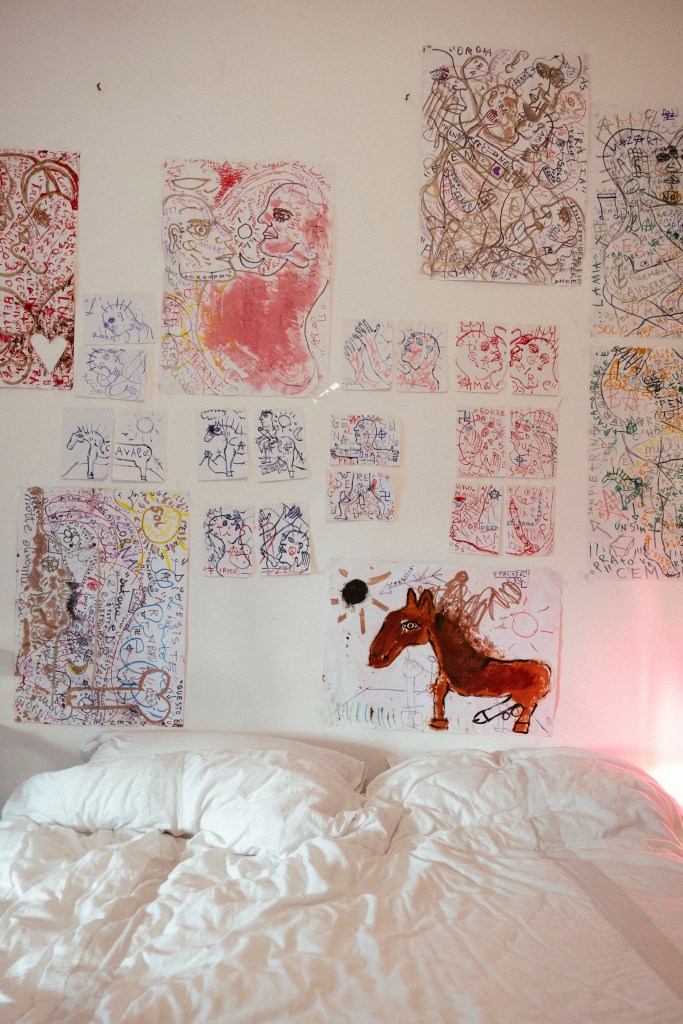 “Incido la pelle, faccio collage, cerco la primitività della materia, mi piace l’istinto animale. Nel cinema senti la responsabilità se sbagli, la pittura è più anarchica e mal che vada butti via il foglio.” Oggi