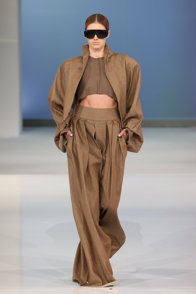 La forza del marchio è sempre stata nel processo di modulazione tridimensionale, che dona a ogni creazione un carattere artigianale e una singolarità ineguagliabile. Ecco che anche gli abiti di MOON SAFARI combinano leggerezza e struttura, creando un universo in cui la forza femminile si manifesta in un mondo vero e contemporaneo, non fatale e sognatore. Modelli strutturati, tagli precisi abbinati alla scelta di tessuti classici e non, sviluppati in una palette cromatica che enfatizza questo dualismo fra la natura e la tecnologia con colori che spaziano dal verde foresta all’oliva, pietra, carbone e nero.