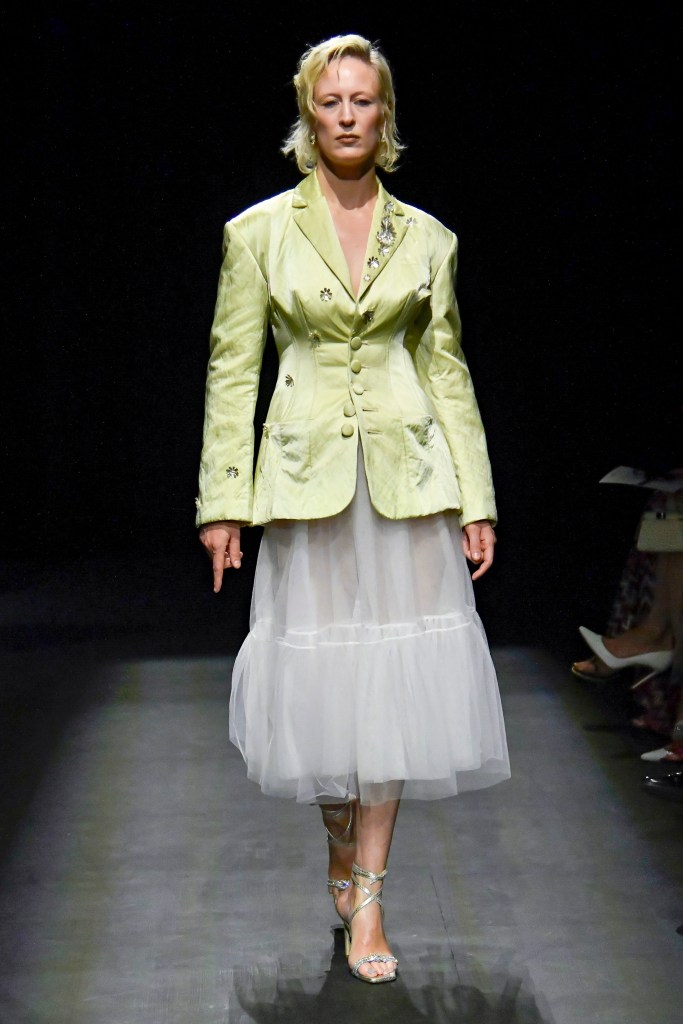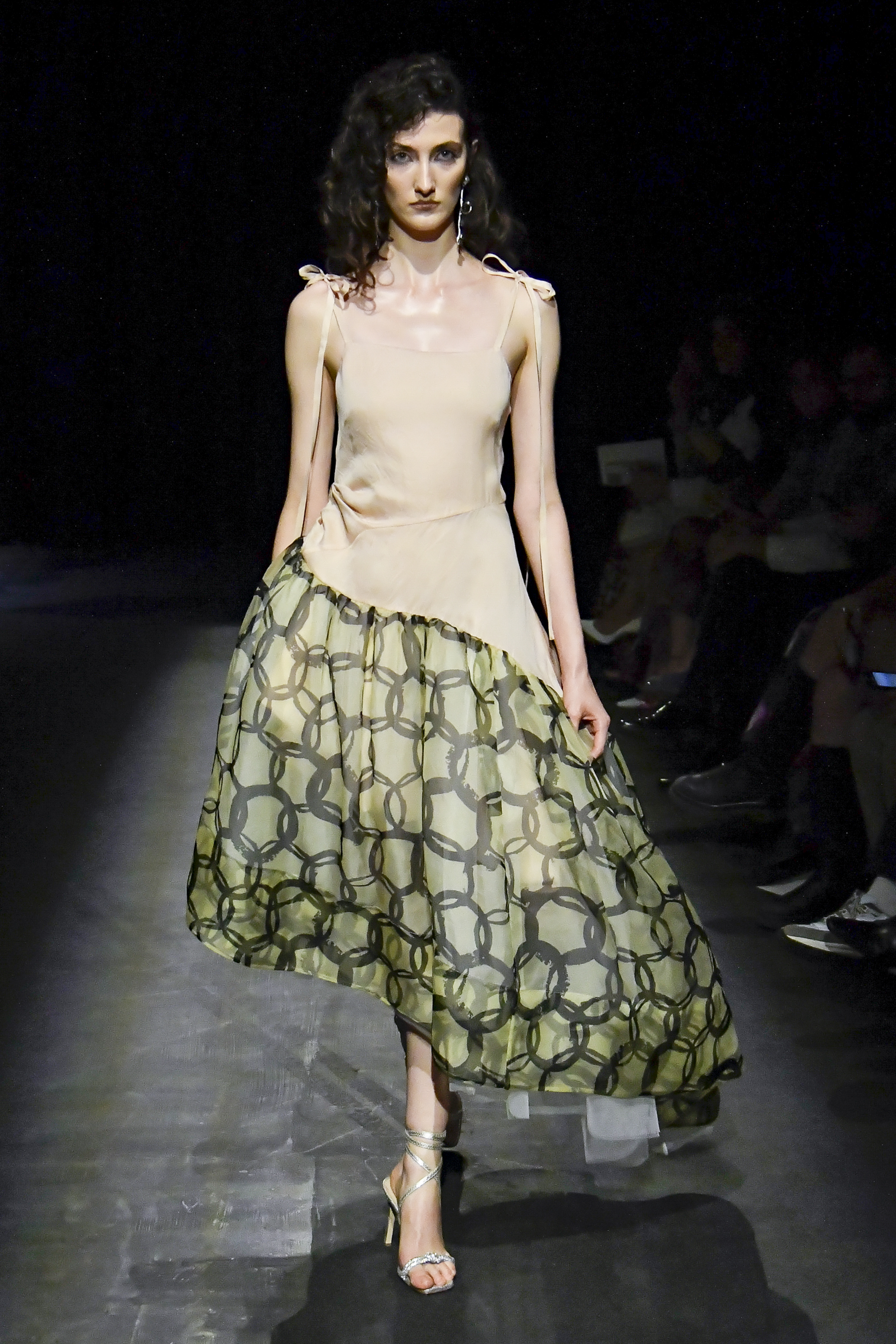 Tanti, inoltre, i dettagli tecnici che rimarcano il forte interesse di McDowell verso la sostenibilità. Prima tra tutte la scelta di collaborare con Octarine, casa di tintura a base di batteri, per aggiungere colore ai capi senza l’uso di prodotti petrolchimici. Gli abiti e le borse su misura, invece, realizzati con le pelli di micelio Forager AirLoom di Ecovative, azienda leader nella tecnologia del micelio. E ancora la scelta di utilizzare seta invenduta preesistente nel magazzino di Erdem, altro stilista londinese, per sottolineare l’approccio circolare del business del brand. Esempio lampante è l’ultimo look della collezione, un abito da sposa appartenente alla famiglia Philpot, reinterpretato da McDowell.