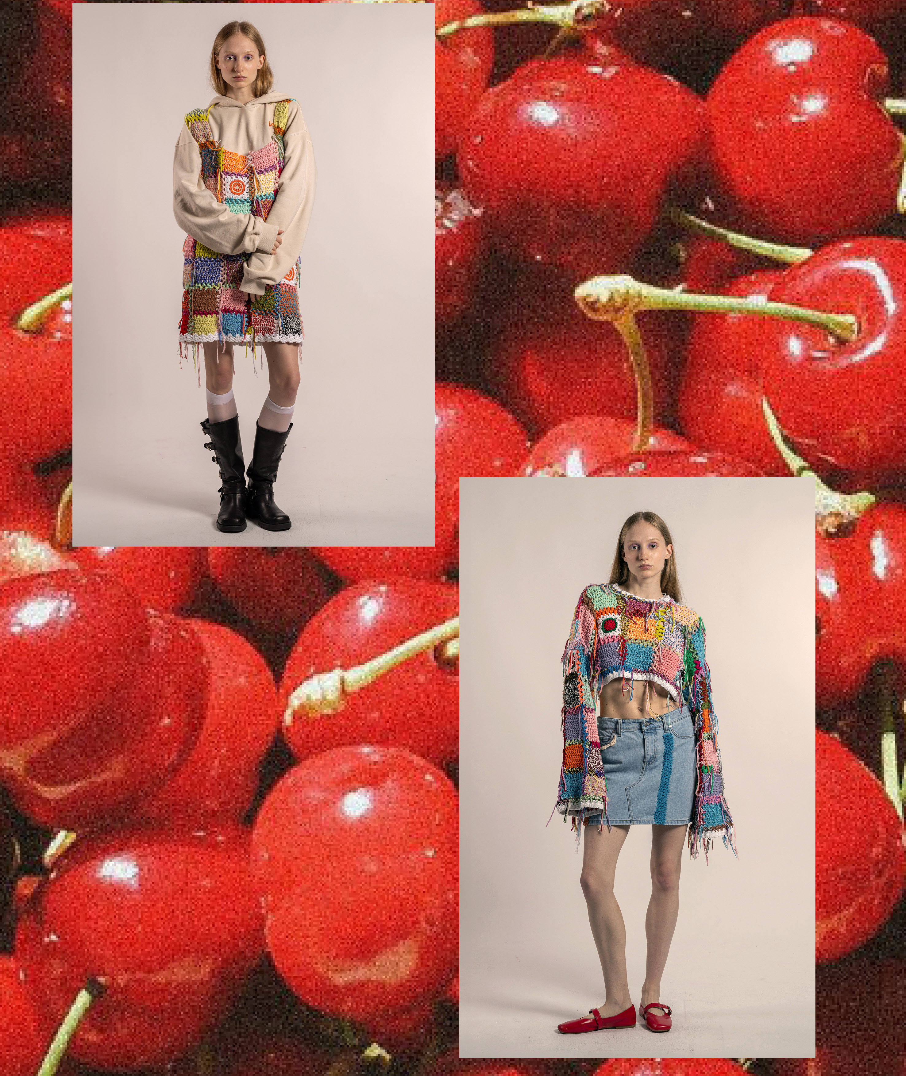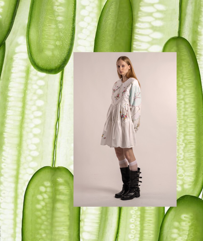 L’essenza pop/rock del patchwork, che è sempre stato un elemento ricorrente in Cavia (ricordiamo l’ultima collezione con scarti di tessuto in tartan), si contrappone allo spirito romantico e coquette dei ricami e delle stampe, creando una combinazione perfetta tra artigianalità e buon gusto.