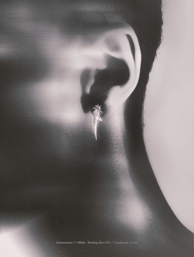 F.: Il nostro obiettivo, supportato da tutta la ricerca che vi abbiamo appena raccontato, è quello di portare al limite, nel suo rispetto, le potenzialità che la tecnologia ci offre. Gli orecchini di anti-uroboros hanno un livello di dettaglio che è millimetrico. Se attraverso la stampa 3d si possono fare cose dettagliate, noi cerchiamo di sfruttarla al massimo.