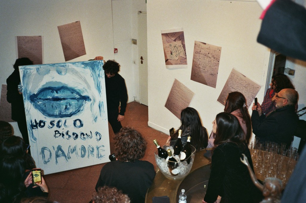 Ci troviamo in via Brera 3, il tempo sembra fermarsi mentre il mondo continua a correre imperterrito. Il blu delle opere di Luca MR evocano in noi quel sentimento di amore trascorso, quello che abbiamo appena passato, o che non sentiamo da tanto, quello che vorremmo sentire. Spesso questo concetto è pensato come una prerogativa femminile: il bisogno di essere amate, coccolate e di volere attenzioni dal partner. Tuttavia, i due artisti sottolineano come non sia così.