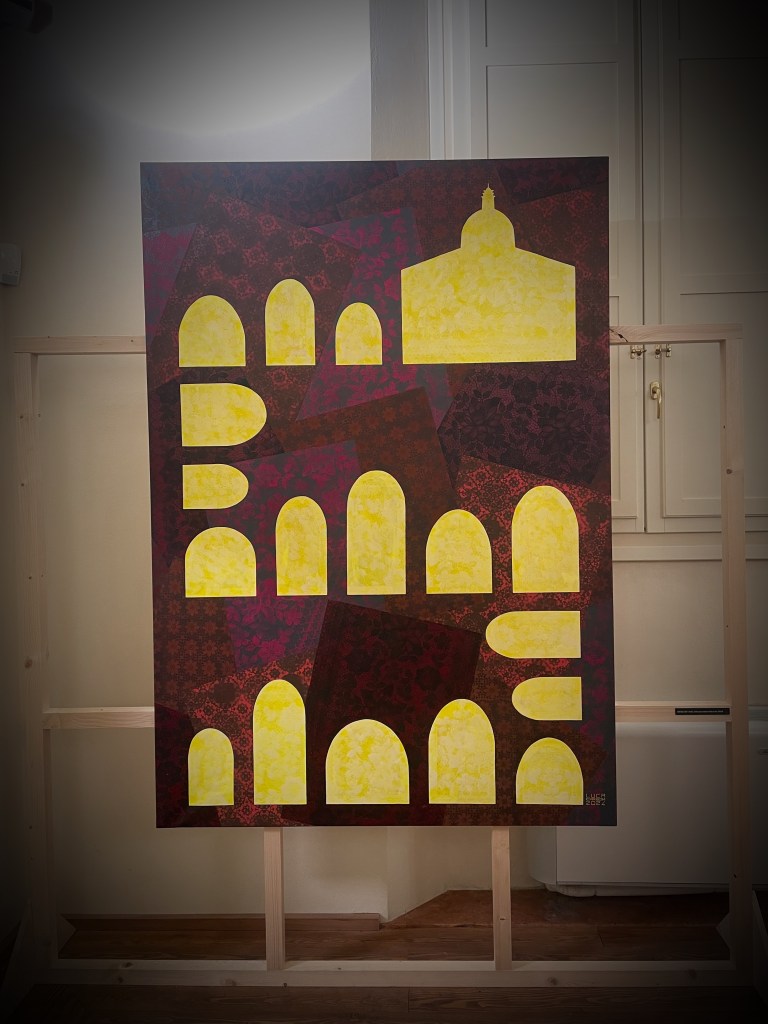 Le linee sono essenziali, attraverso colori netti, puri, lo stencil, l’acrilico ma anche la vernice spray raccontano una Bologna simbolica, fatta di colori netti e puri, quasi a creare un murales che racconta la città attraverso le sue linee essenziali. Una sorta di murales con stratificazioni di elementi assolutamente armoniosi tra loro che regalano l’effetto finale autentico di un vero e proprio racconto.