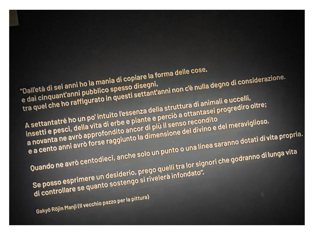 Dall’età di sei anni ho avuto la mania di disegnare la forma delle cose. Verso i cinquanta avevo prodotto una quantità di disegni, ma tutto ciò che ho fatto prima dei settant’anni non merita considerazione. A settantatré anni ho imparato un po’ di come sono fatte realmente le cose: uccelli, animali, insetti, pesci, l’erba e gli alberi. Di conseguenza, a ottant’anni avrò fatto ulteriori progressi, a novanta penetrerò il mistero delle cose, a cento anni sarò decisamente arrivato a un livello meraviglioso e, a centodieci, ogni punto, ogni linea avrà vita propria.