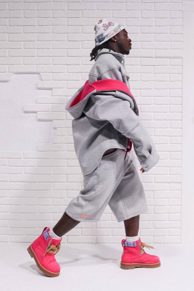 La sfilata si apre con Moise Kean, attaccante della Serie A, seguito da modelli, artisti e amici del marchio, tra cui Sita Abellan, Alvin Kamara e Taylil James. Quella di PDF non è una semplice presentazione della nuova collezione, ma una chiara dichiarazione d’intenti. Domenico Formichetti vuole affermare la posizione di PDF all’interno della fashion week milanese e lo fa da protagonista audace.