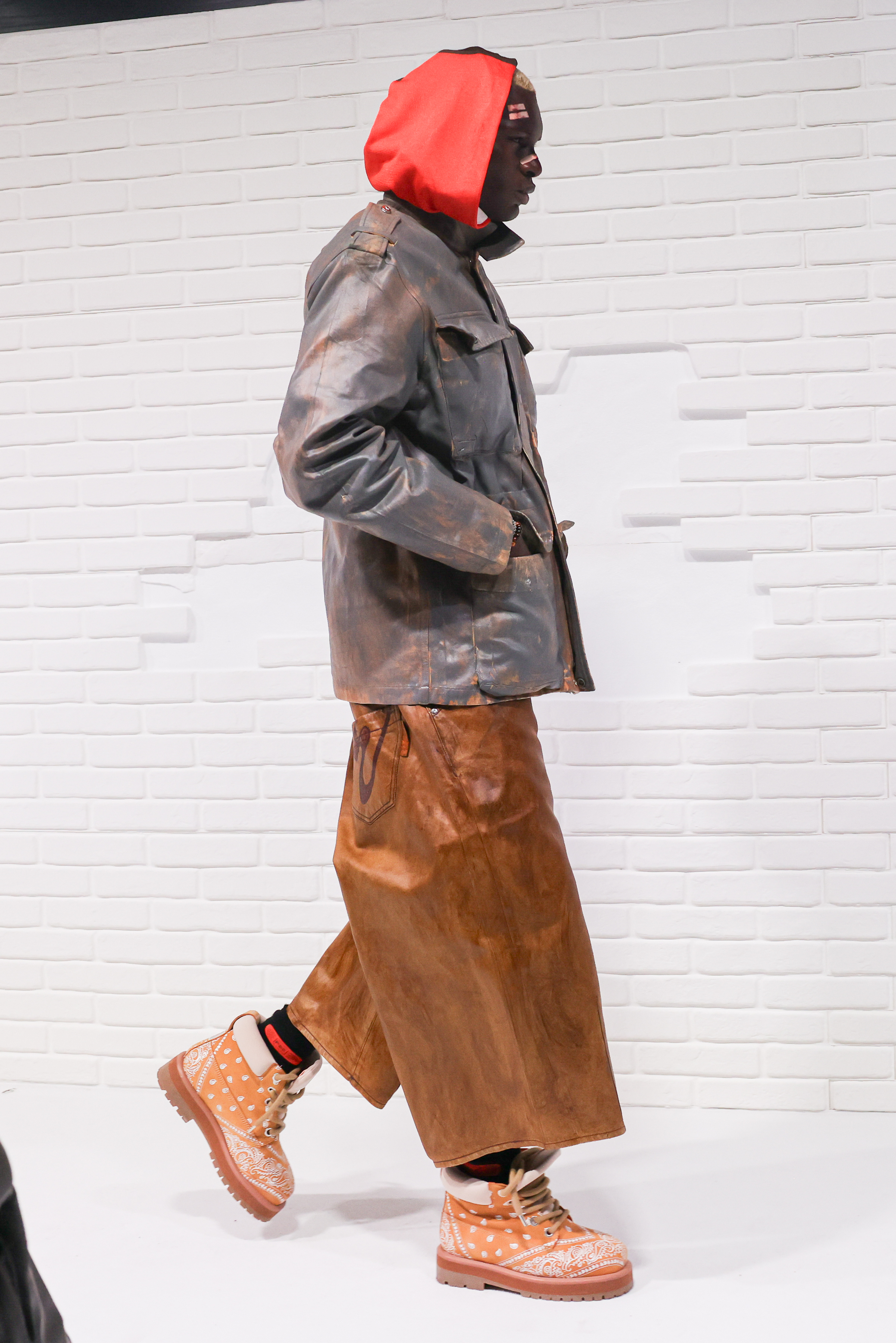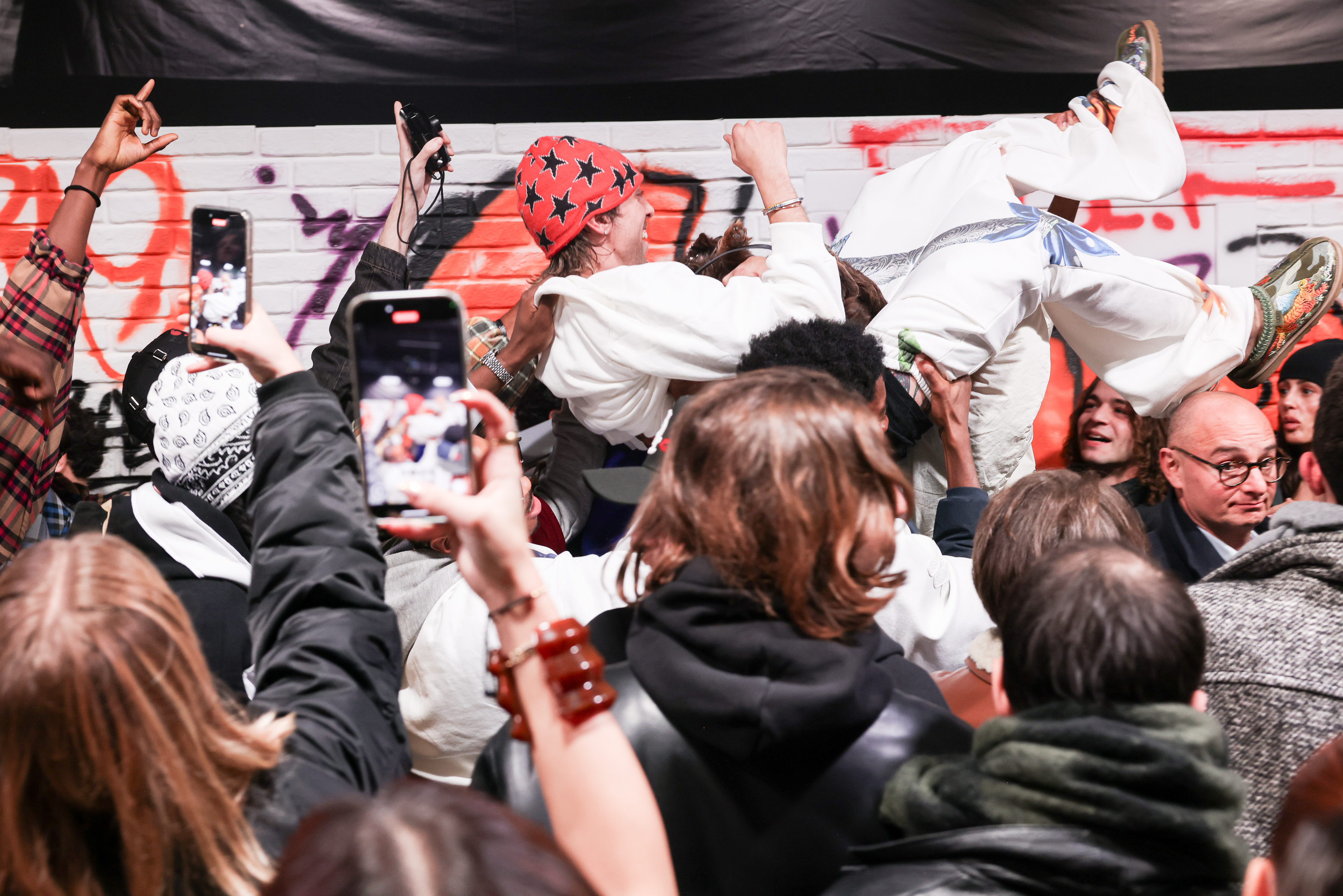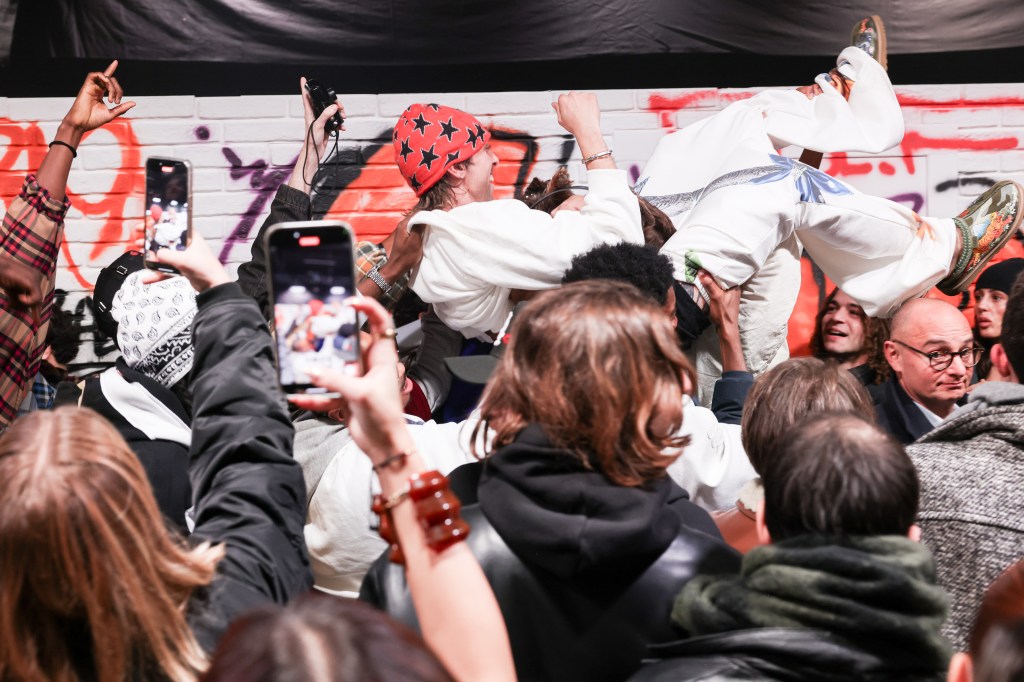 Ogni look raccontava una storia: dalle stampe ispirate ai graffiti che rimandavano al linguaggio visivo delle copertine degli album degli anni ’90, alle silhouette oversize che evocavano la spavalderia sartoriale di Harlem nel suo periodo di massimo splendore.