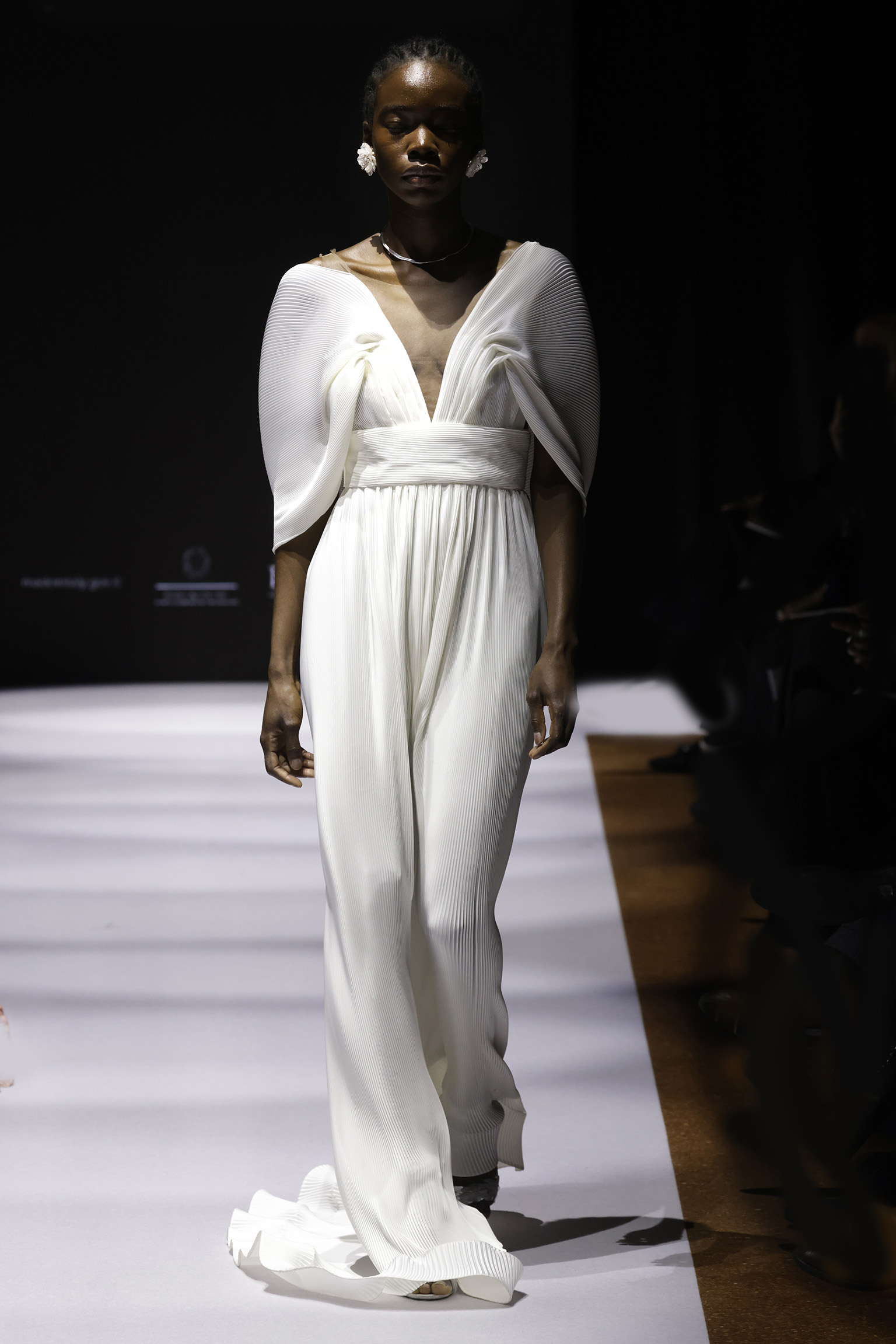 Tra i protagonisti, Bruna Couture ha presentato sogni sartoriali che uniscono l’eleganza retrò degli anni ’50 con un design contemporaneo, arricchiti da tessuti pregiati e ricami raffinati. Giusi Munafò ha incantato con le sue linee ispirate alle Muse greche, mescolando arte e sostenibilità in una danza di ricami 3D e ornamenti delicati. Syrtaria ha rivisitato il folklore mediterraneo, creando capi esclusivi e in edizione limitata che celebrano la tradizione e l’innovazione, rendendo omaggio all’arte e alla storia della Sicilia. Mariateresa Pellegrino ha portato in passerella collezioni audaci e romantiche, caratterizzate da un approccio eco-friendly e consapevole, mentre Sartoria Prisciantelli ha esaltato la perfezione sartoriale con leggerezza, tagli impeccabili e tessuti pregiati, simboli di un’eleganza senza tempo.