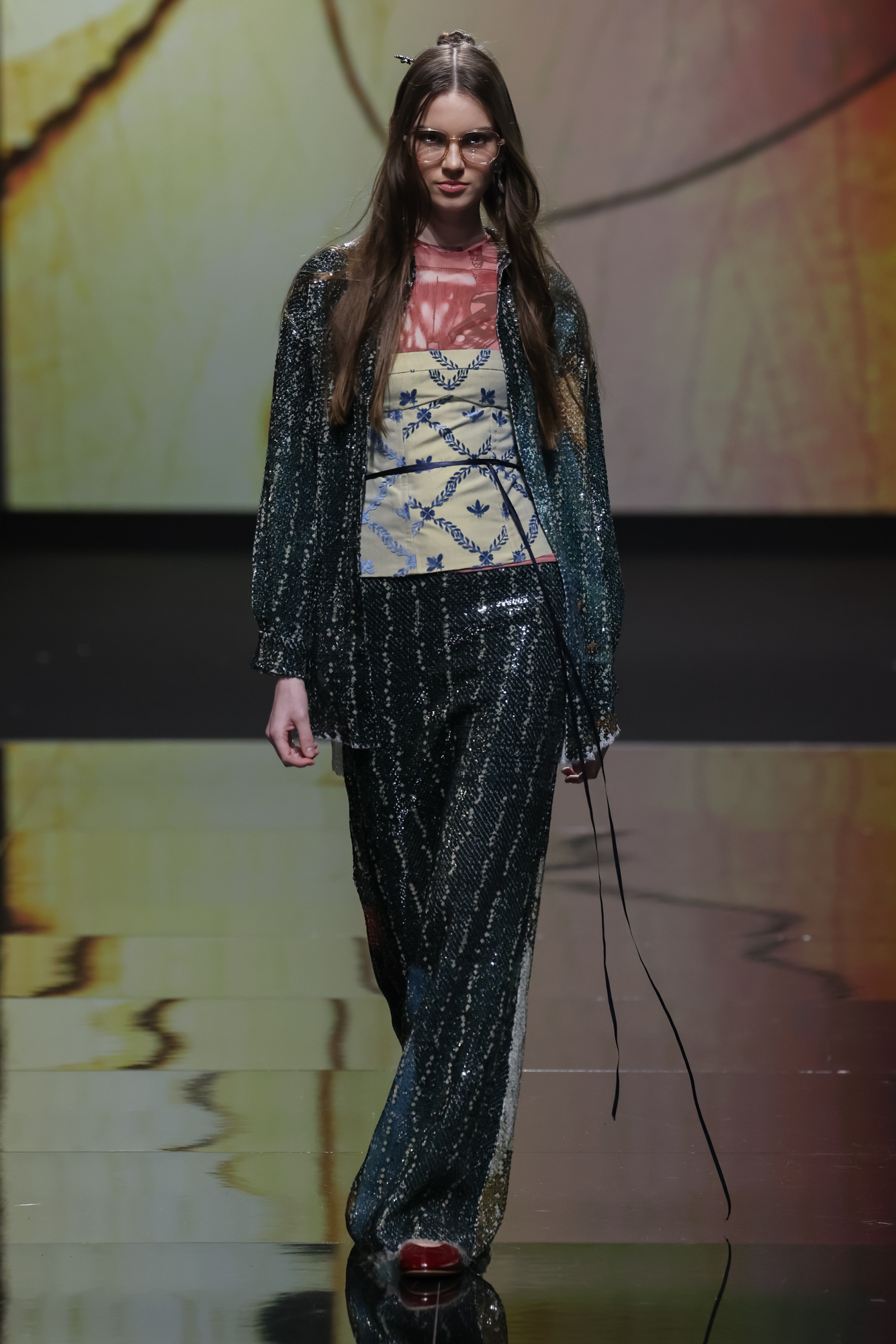 L’arte è il cuore di questa collezione, perché l’arte è dentro ognuno di noi. Alcuni capi diventano veri e propri mosaici, grazie all’uso di micro-paillettes e stampe che richiamano i dettagli delle pitture rinascimentali e fiamminghe, da Antonello da Messina a Van Eyck.
