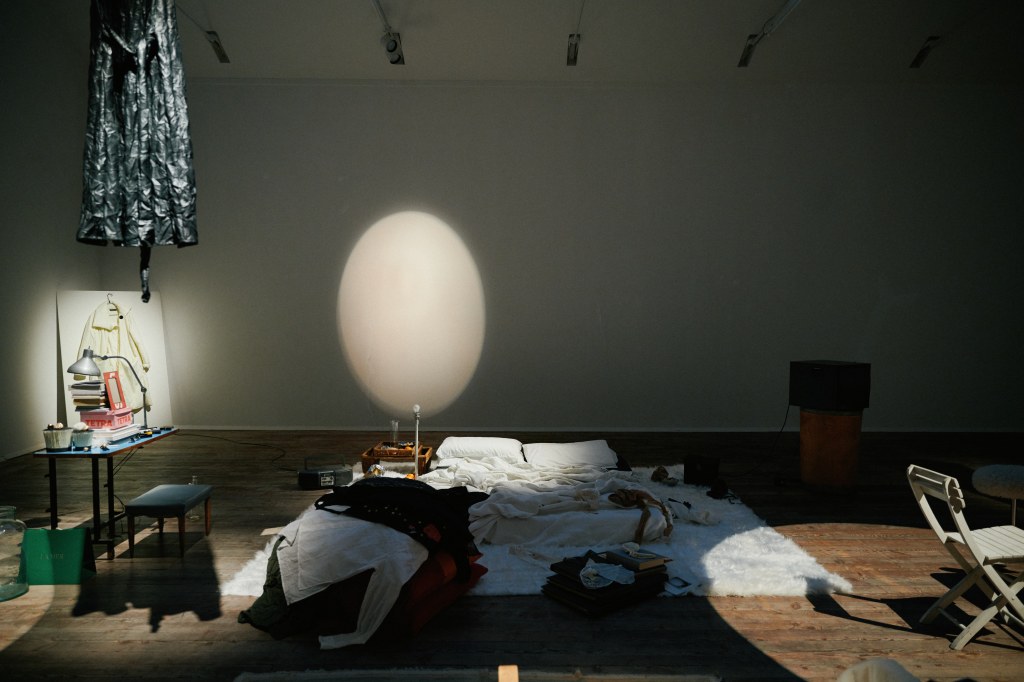 Sono le 18:30 del primo sabato di Marzo, durante la Fashion Week milanese, ed ecco che lo Spazio Maria Calderara, in collaborazione con la Fondazione Piero Manzoni, ospita una performance unica, definita dalla stilista stessa “Fashion Performance“. Una modella performer si muove all’interno di una vera e propria installazione, dove elementi tipici della quotidianità e della poetica manzoniana si mescolano con gli abiti della collezione, appesi sospesi nello spazio e illuminati come vere e proprie opere d’arte.
