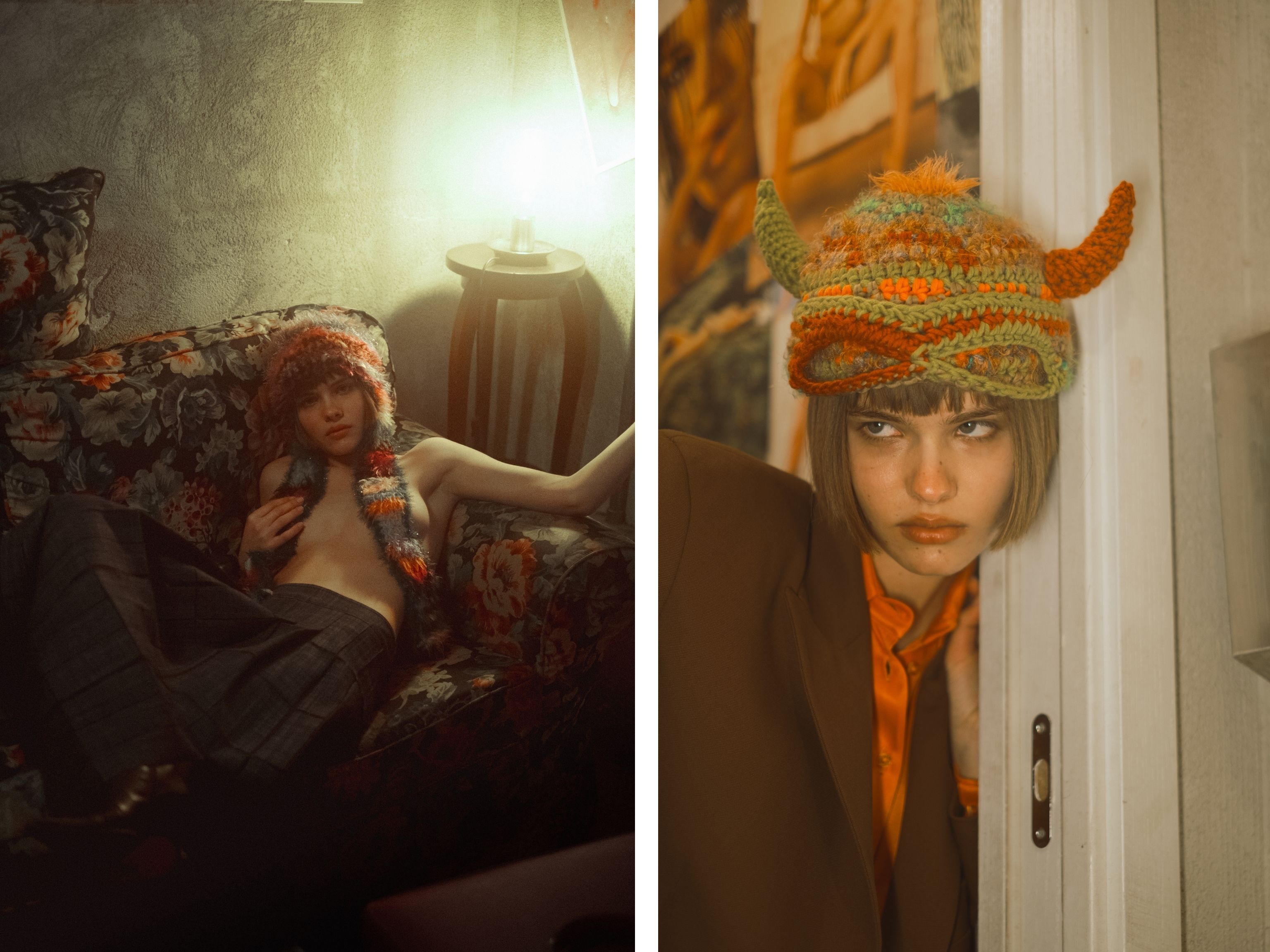 Vi siete catapultate in questo universo da giovanissime, com’è nato tutto ciò e soprattutto come ha influito il vostro successo nel mondo della moda sulla vostra crescita personale? C’è stato un momento di paura vedendo arrivare il successo tutto insieme? È stato tutto velocissimo e inaspettato. Il nostro brand è nato quasi per gioco nel 2020, in piena pandemia. Mentre eravamo immerse in quella strana bolla di tempo sospeso, abbiamo riscoperto l’arte dell’uncinetto, un prezioso sapere tramandatoci da nostra nonna. Quello che inizialmente era un semplice passatempo per sentirci vicine e occupare le giornate incerte, si è trasformato in uno spazio di espressione autentica. Tra un punto e l’altro, abbiamo ritrovato noi stesse proprio quando tutto sembrava vacillare.