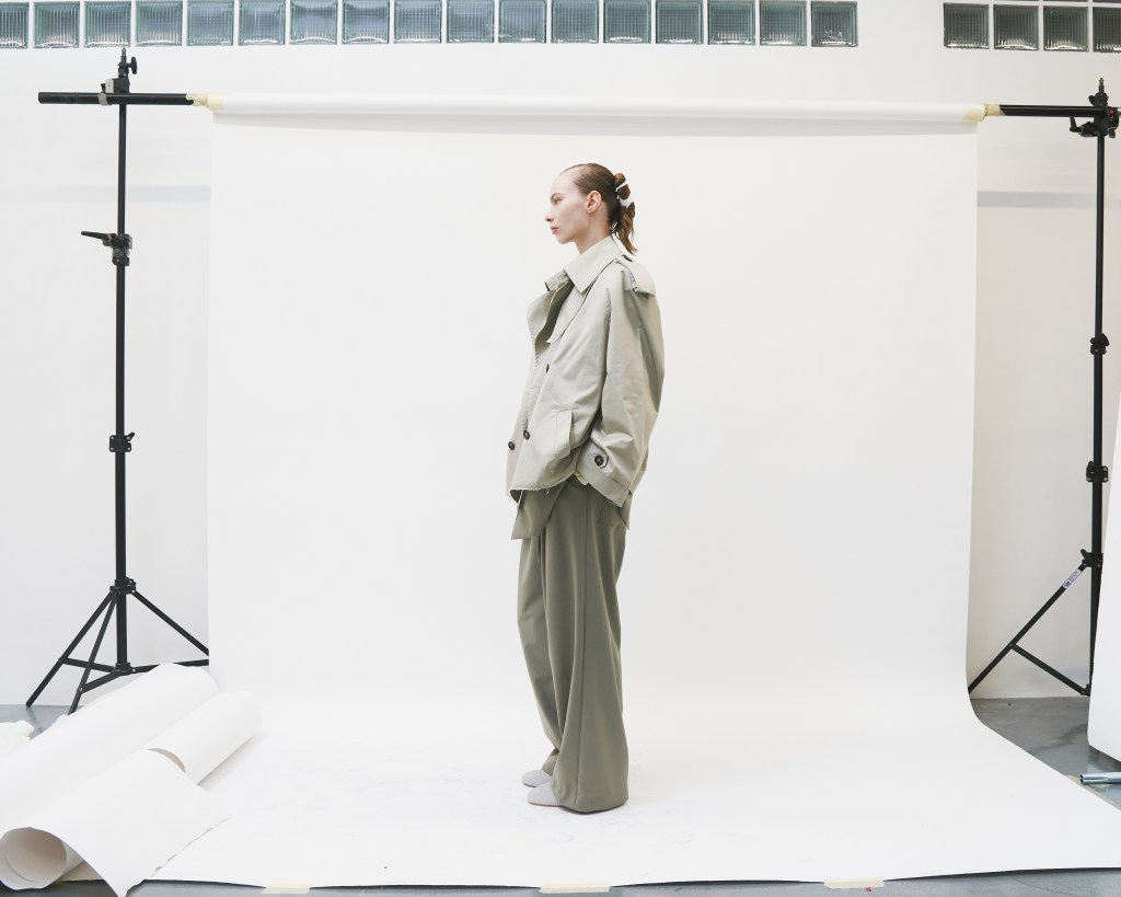 Se con Di Morabito si corre tra passato e futuro, con Federico Cina il tempo si ferma. La Fondazione Sozzani si è trasformata in un paesaggio di carta, silenzioso, fatto di oggetti e respiri. “Sottovoce” è il titolo della collezione, ma anche l’attitudine: qui la moda non urla, sussurra.