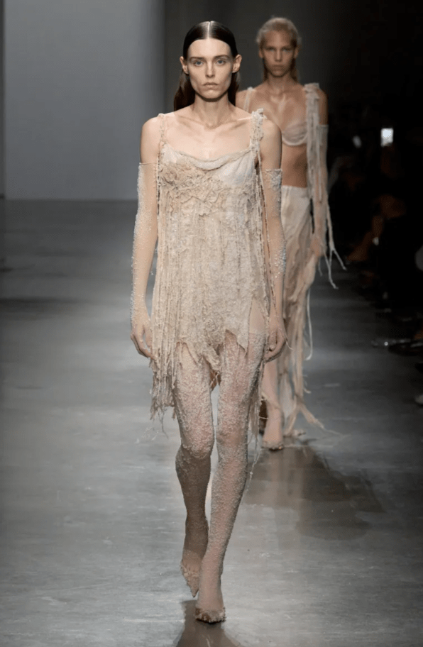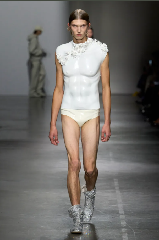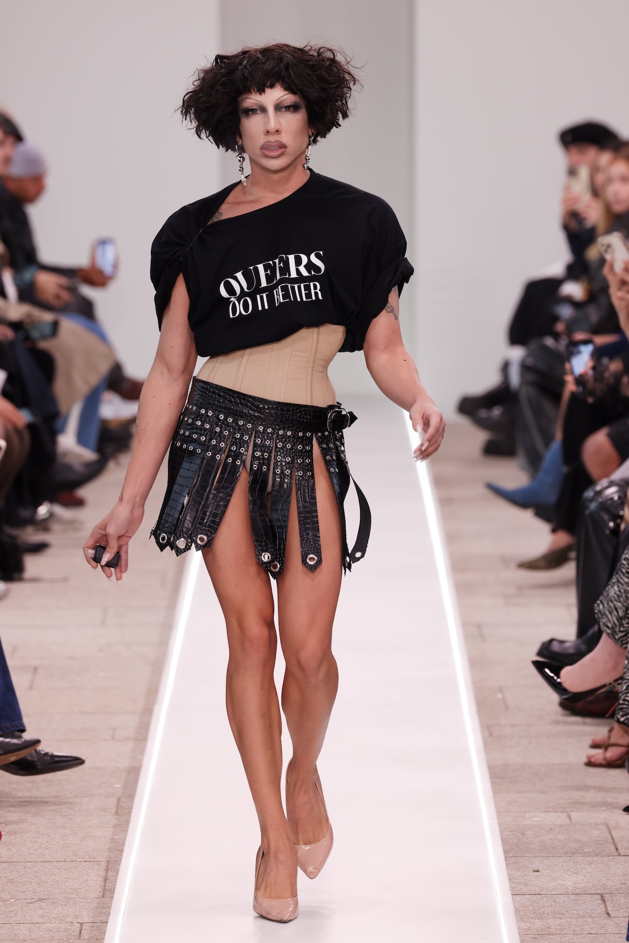 La collezione è quasi un’autopsia emotiva della scena clubbing, trasformata in capi e visioni. Il casting? Icone vere della notte. Nessuna modella da showroom, ma persone vere, carne viva, comunità. Una sfilata che è un atto d’amore, ma anche di rivendicazione. Applausi veri.